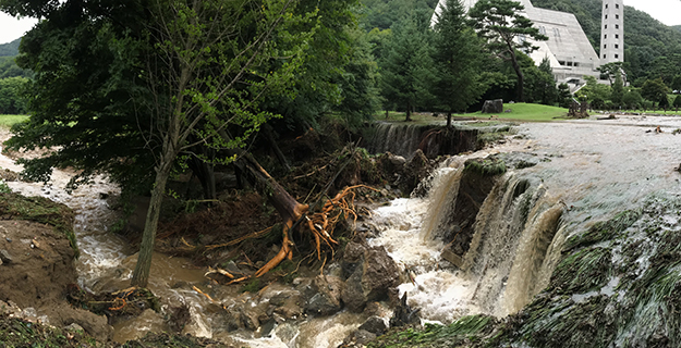 긴 장마와 전국적인 집중호우로 인명과 재산 피해가 이어지는 가운데 일부 성당과 수도원도 피해를 입었다.