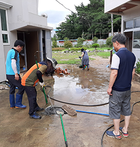 이에 앞서 부산 길천본당(주임 이성균 신부)은 7월 23일 밤 폭우로 성당 내부에 한때 허리까지 물이 차오르는 비 피해를 입었다. 길천성당이 위치한 기장군에 205㎜의 집중호우가 내리고 하천이 범람하면서, 성당에서도 성전과 교리실, 강당에 물이 찼다. 다음 날인 24일 오전, 본당 신자 30여 명이 복구 작업에 나서 성당 안에 찬 물을 퍼내고, 토사와 쓰레기더미를 치웠다. 냉장고와 제습기 등 가전제품과 책 종류는 못쓰게 됐지만, 오르간과 냉방기 등은 살릴 수 있었다.
