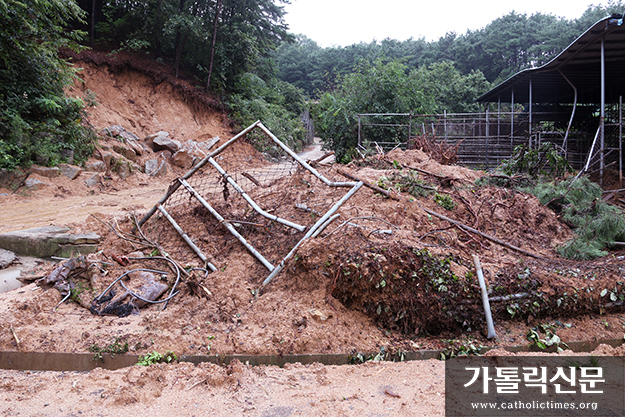 연일 폭우로 수원교구 용인 백암본당 신자 장춘옥씨가 운영하는 사슴농장에 토사가 밀려들었다.