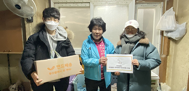 지난해 12월 인천광역시 주안동에 위치한 유기동물 보호소 ‘주안쉼터’에 후원물품 전달한 직원들. 629(유기동물구하기) 제공