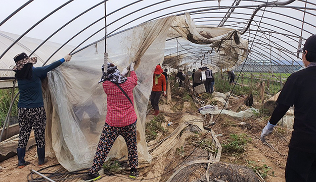 광주대교구는 8월 22일 사회복지법인 가톨릭광주사회복지회 회장 이봉문 신부를 비롯해 재난재해봉사단 12명과 구례본당(주임 최길주 신부) 신자 10명이 수해 피해를 입은 신자 가정을 도왔다. 다른 가옥들은 위급한 조치를 취했지만 전남 구례군 구례읍에 위치한 구례본당 소속 신자 비닐하우스는 많은 손길이 필요했다.