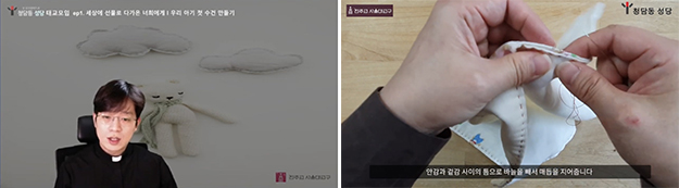 본당은 9월 12일 유튜브 ‘청담동성당 태교모임’을 통해 ‘신부님과 함께하는 비대면 가톨릭태교모임’(이하 비대면 태교모임)의 첫 모임을 열었다. 이날 비대면 태교모임은 ‘세상에 선물로 다가온 너희에게’를 주제로 한 본당 부주임 방종우 신부 강의와 우리 아기 첫 수건 만들기 체험 프로그램으로 진행됐다.
