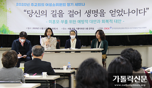 주교회의 여성소위원회(위원장 손희송 주교)는 11월 17일 오후 2시 서울 명동 가톨릭회관 3층 강의실에서 ‘미혼모·부를 위한 예방적 대안과 회복적 대안’을 주제로 2020년 정기 세미나를 마련했다. 이날 세미나에서 참석자들은 ‘미혼모·부’ 예방적 대안으로 ‘가정 성교육’을 제시했고, 회복적 대안으로는 ‘실질적인 경제적 지원’이 중요하다고 입을 모았다.