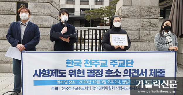 주교회의 정의평화위원회(위원장 배기현 주교) 사형제도폐지소위원회(이하 사폐소위)는 12월 9일 오후 2시 현직 주교단(3월 18일 기준) 전원이 서명한 ‘사형제도 위헌 결정 호소 의견서’를 헌법재판소에 전달했다. 주교단은 2020년 주교회의 춘계 정기총회에서 의견서에 서명했다.