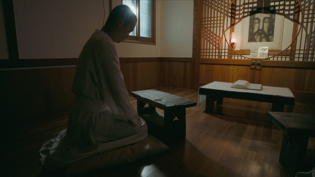 올리베따노 성 베네딕도 수도회 고성수도원 모습을 담은 2부작 다큐멘터리가 ‘아리랑TV’를 통해 전 세계에 방송된다. 사진은 수도원에서 기도 중인 한 수사. 아리랑TV 제공