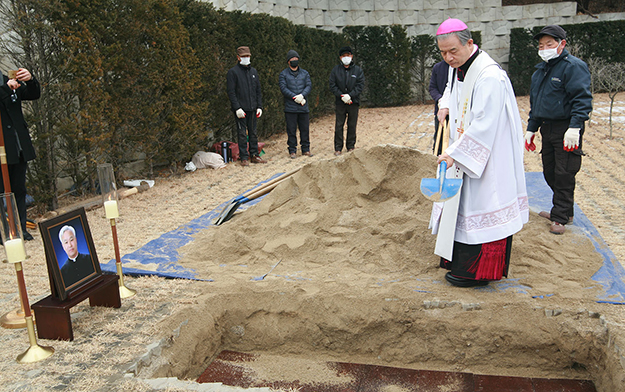 유해가 안장된 안성추모공원 성직자 묘역에서는 이용훈 주교 주례로 ‘무덤 축복식 및 하관 예식’이 거행됐다.