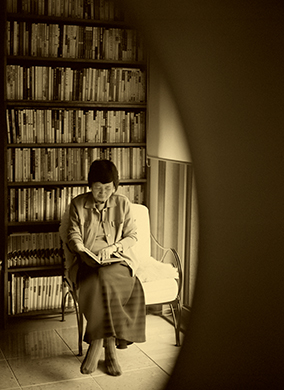 서재에 앉아 있는 박완서 작가. 수류산방출판사 제공