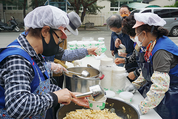 간식 지원 요청 시설 찾아가 즉석에서 조리해 음식 나눠