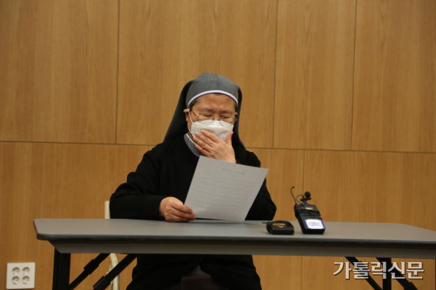 1월 21일 안경순 수녀가 아동복지시설 꿈나무마을 아동학대 의혹에 관한 사과문을 발표하고 있다.