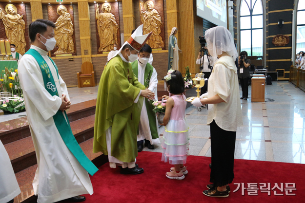 이날 예물은 임종인(스테파노·71·제2대리구 포일본당)·김미자(클라우디아·69) 부부와 손녀 임나윤(스텔라·7)양이 함께 봉헌해 신앙 전수자로서의 조부모와 노인의 의미를 북돋웠다.
